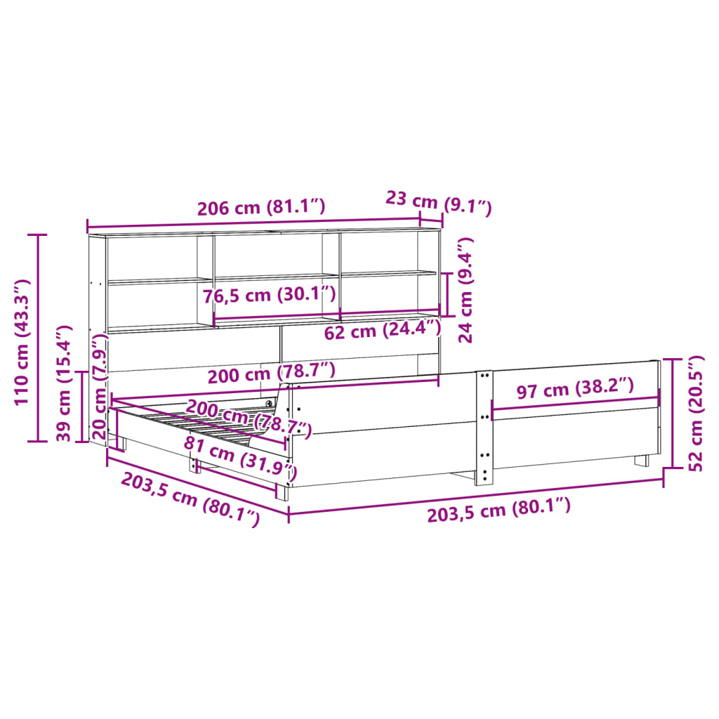 Sängynrunko ilman patjaa vahanruskea 200×200 cm täysi mänty