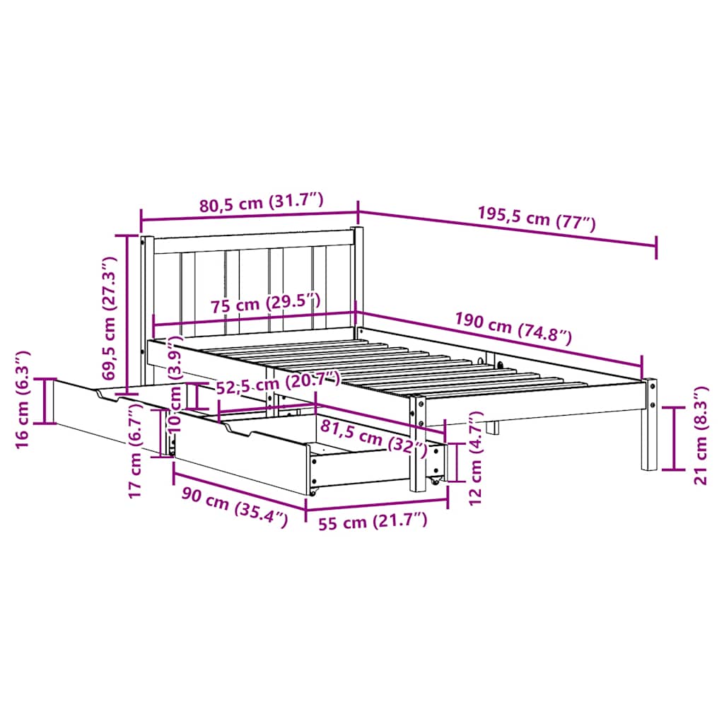 • Sopiva patjan koko: 75 x 190 cm (L x P) (Patja ei sisälly tilaukseen)