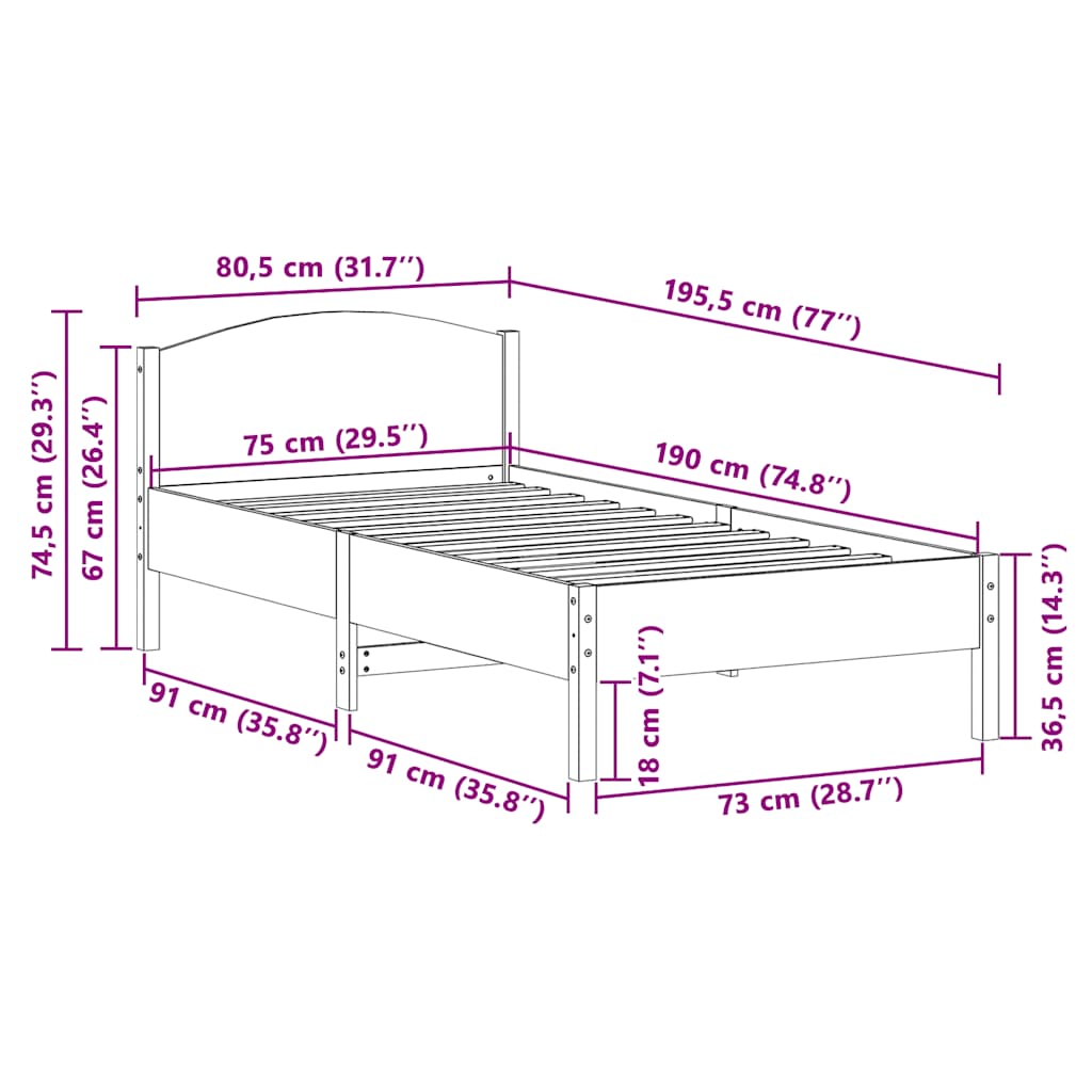 Sängynrunko ilman patjaa vahanruskea 75×190 cm täysi mänty