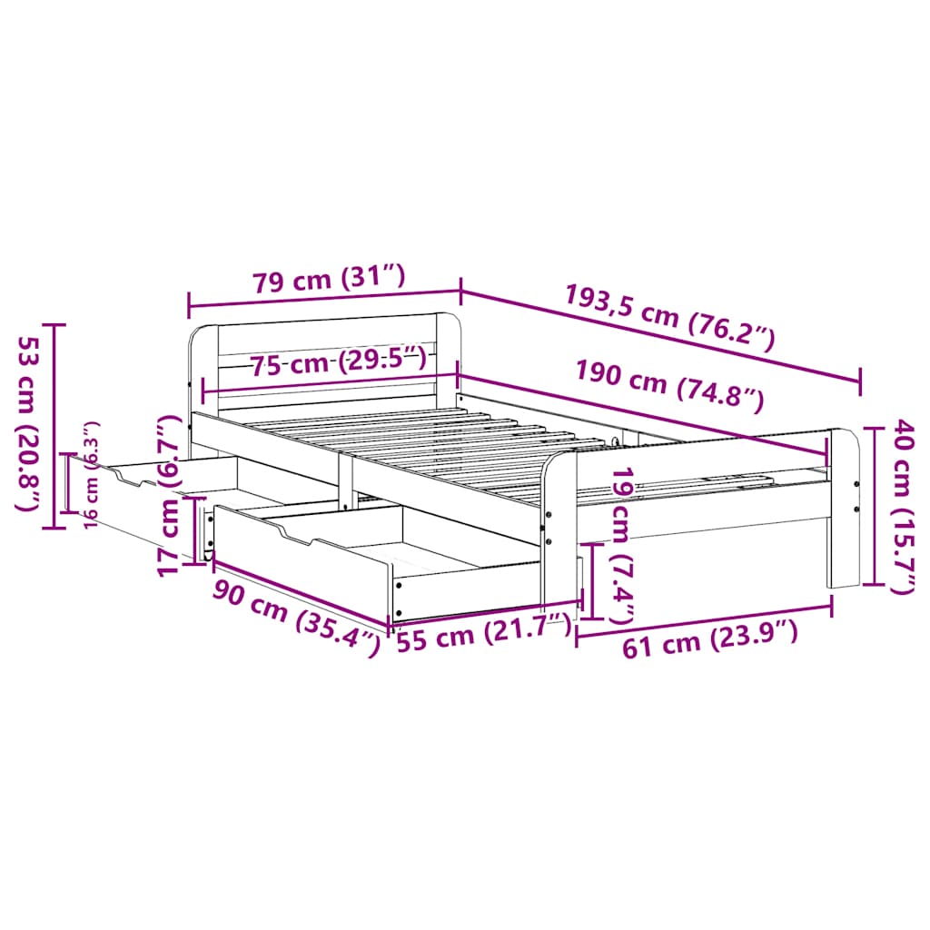 Sängynrunko ilman patjaa vahanruskea 75×190 cm täysi mänty