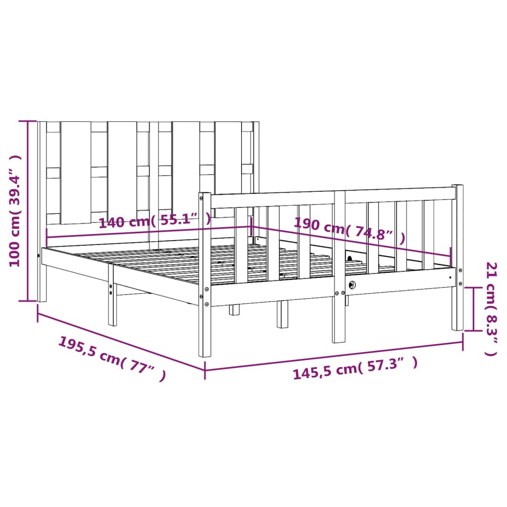 Sängynrunko ilman patjaa valkoinen 140×190 cm täysi mänty