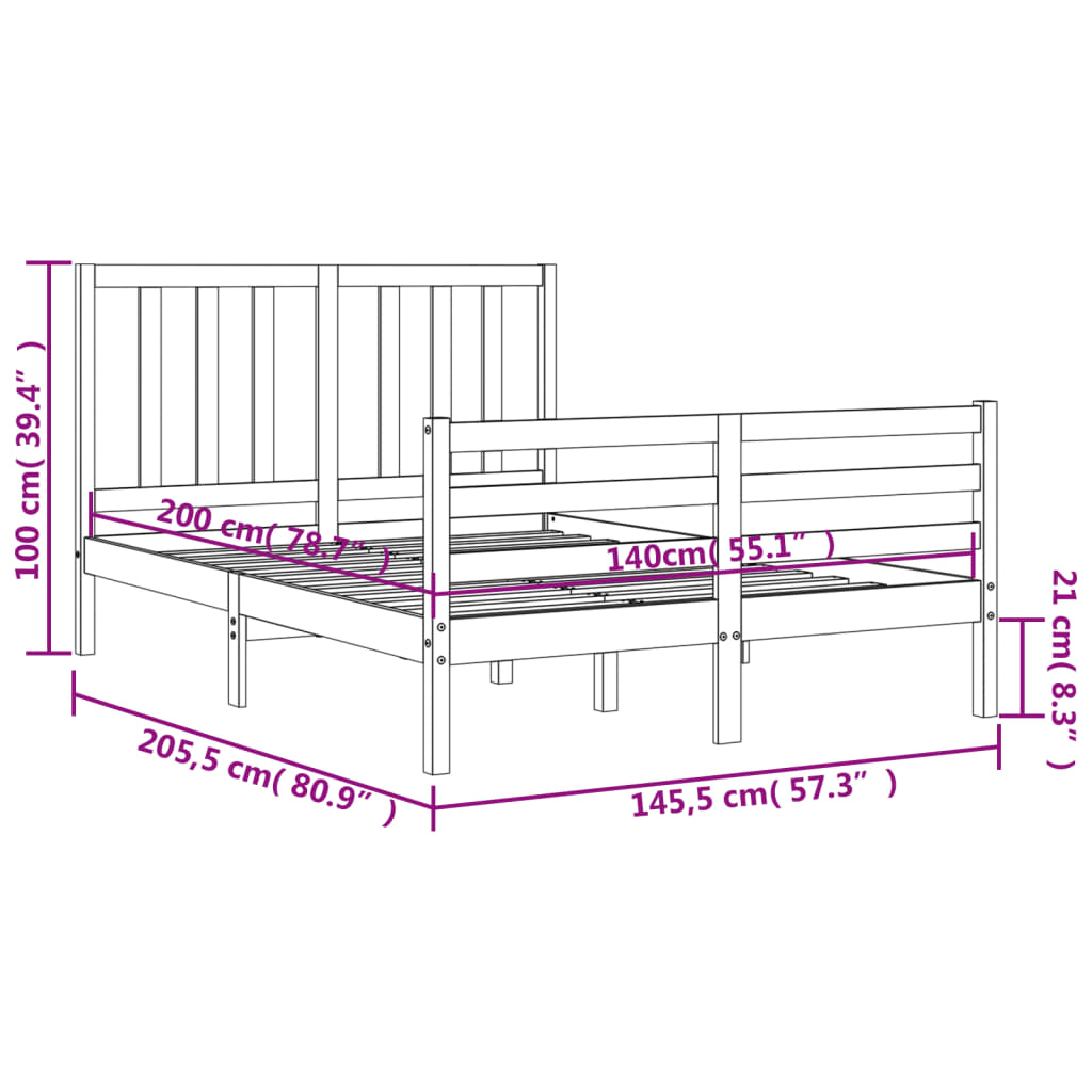 Sängynrunko ilman patjaa valkoinen 140×200 cm täysi mänty