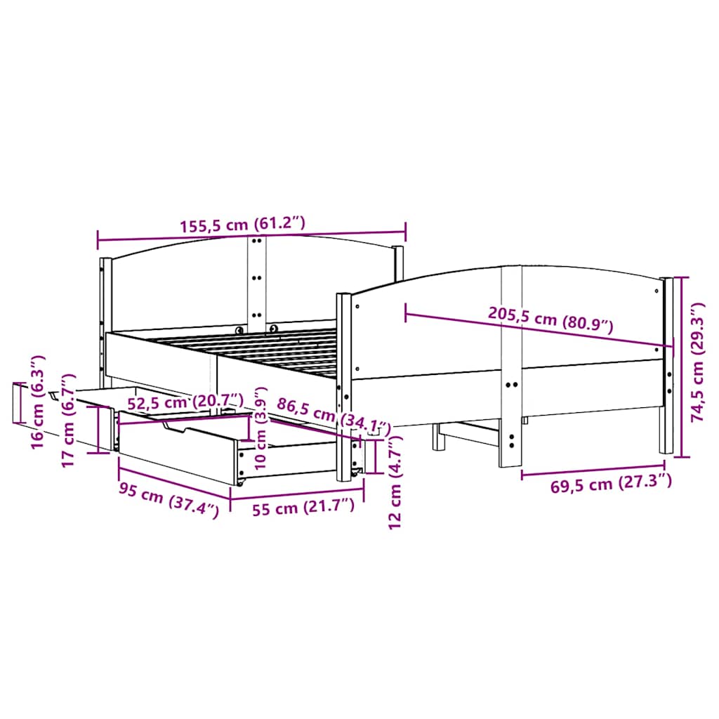 • Hyödynnä kaikki käytettävissä oleva tila: Tämä sängynrunko sisältää kaksi vuodelaatikkoa sängyn alla, jotka tarjoavat säilytystilaa vuodevaatteille, eri vuodenaikoina käytettäville vaatteille ja leluille.