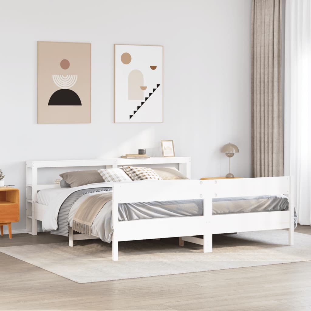 Sängynrunko ilman patjaa valkoinen 200×200 cm täysi mänty