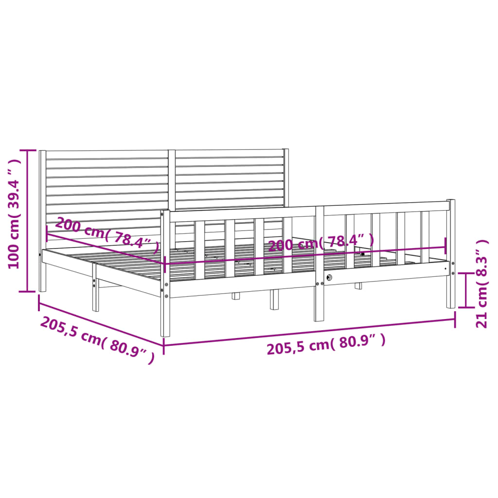 Sängynrunko ilman patjaa valkoinen 200×200 cm täysi mänty