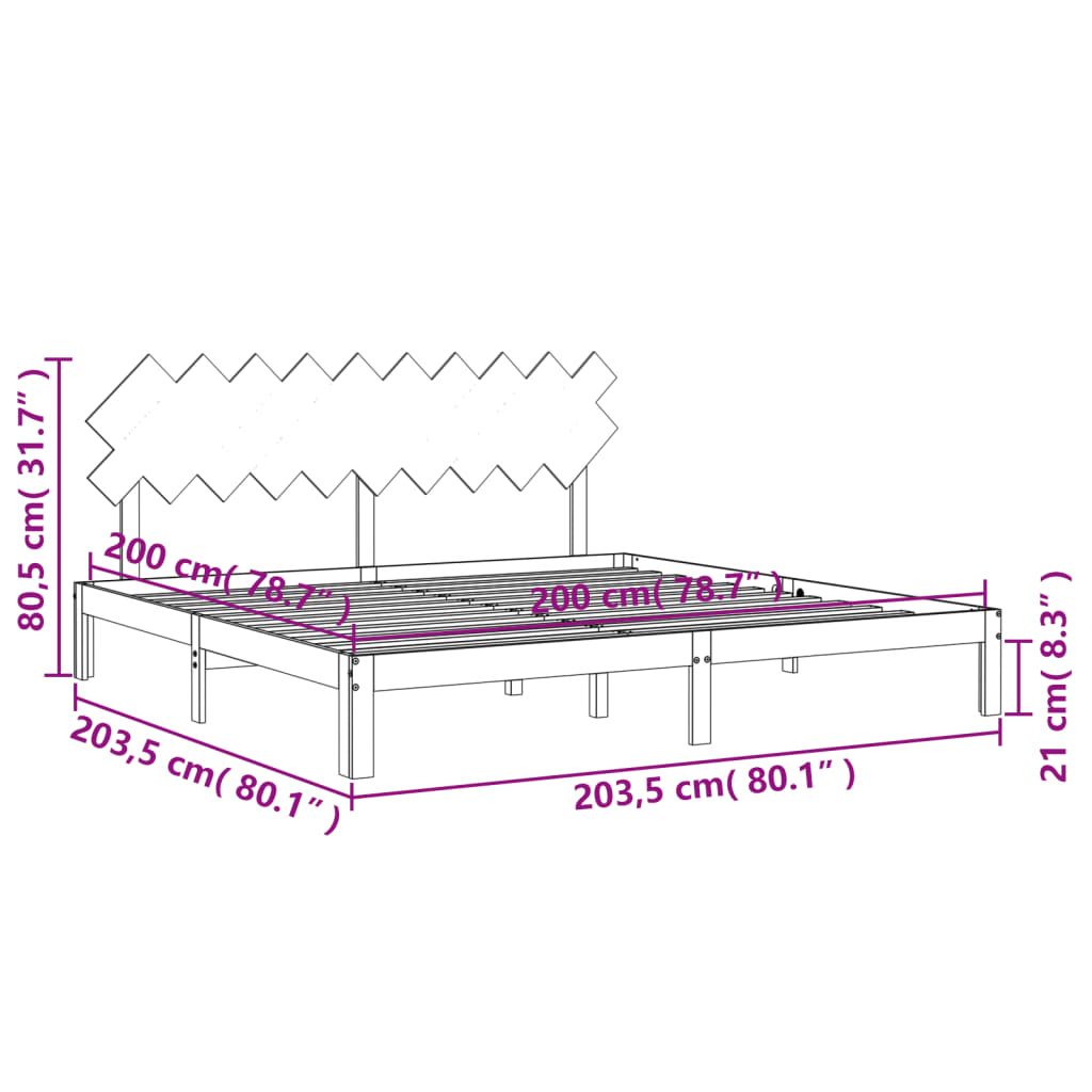 Sängynrunko ilman patjaa valkoinen 200×200 cm täysi mänty