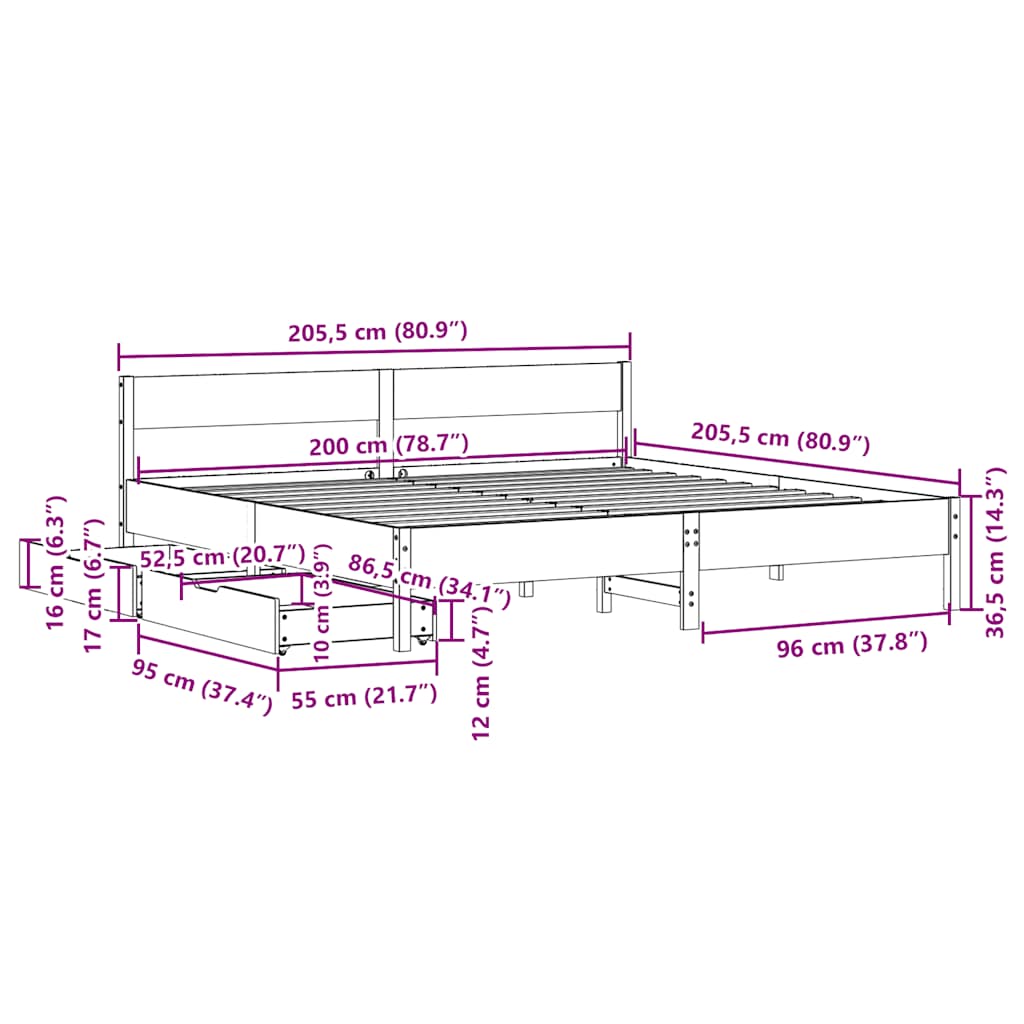 • Hyödynnä kaikki käytettävissä oleva tila: Tämä sängynrunko sisältää kaksi vuodelaatikkoa sängyn alla, jotka tarjoavat säilytystilaa vuodevaatteille, eri vuodenaikoina käytettäville vaatteille ja leluille.
