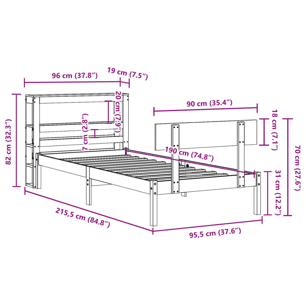 • Sopiva patjan koko: 90 x 190 cm (L x P) (Patja ei sisälly tilaukseen)