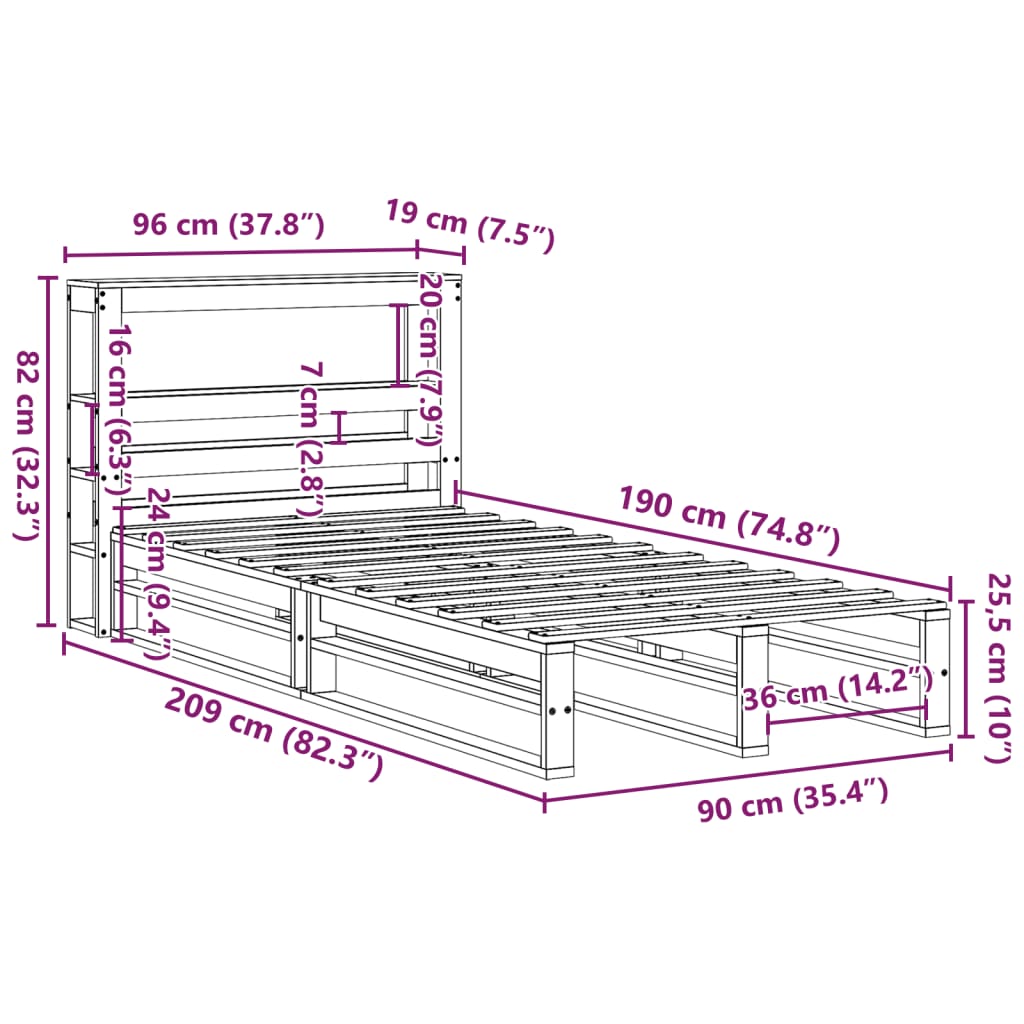 • Sängynpäädyn mitat: 96 x 19 x 82 cm (P x L x K)