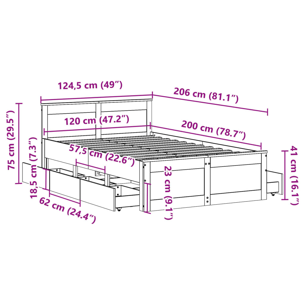Sängynrunko ilman valkoinen 120×200 cm täysi mänty
