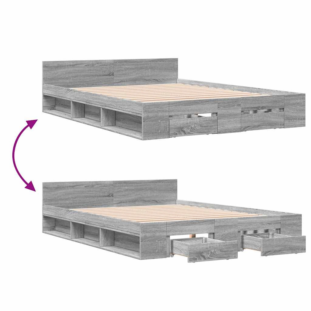 Sängynrunko laatikoilla harmaa Sonoma 120×190 cm tekninen puu
