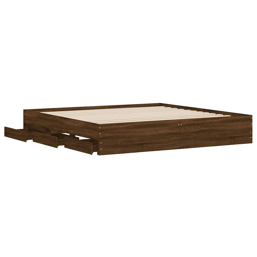 Sängynrunko laatikoilla ruskea tammi 200×200 cm tekninen puu