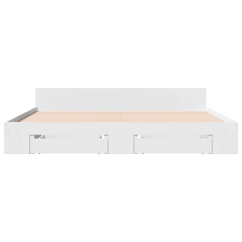 Sängynrunko laatikoilla valkoinen 200×200 cm tekninen puu