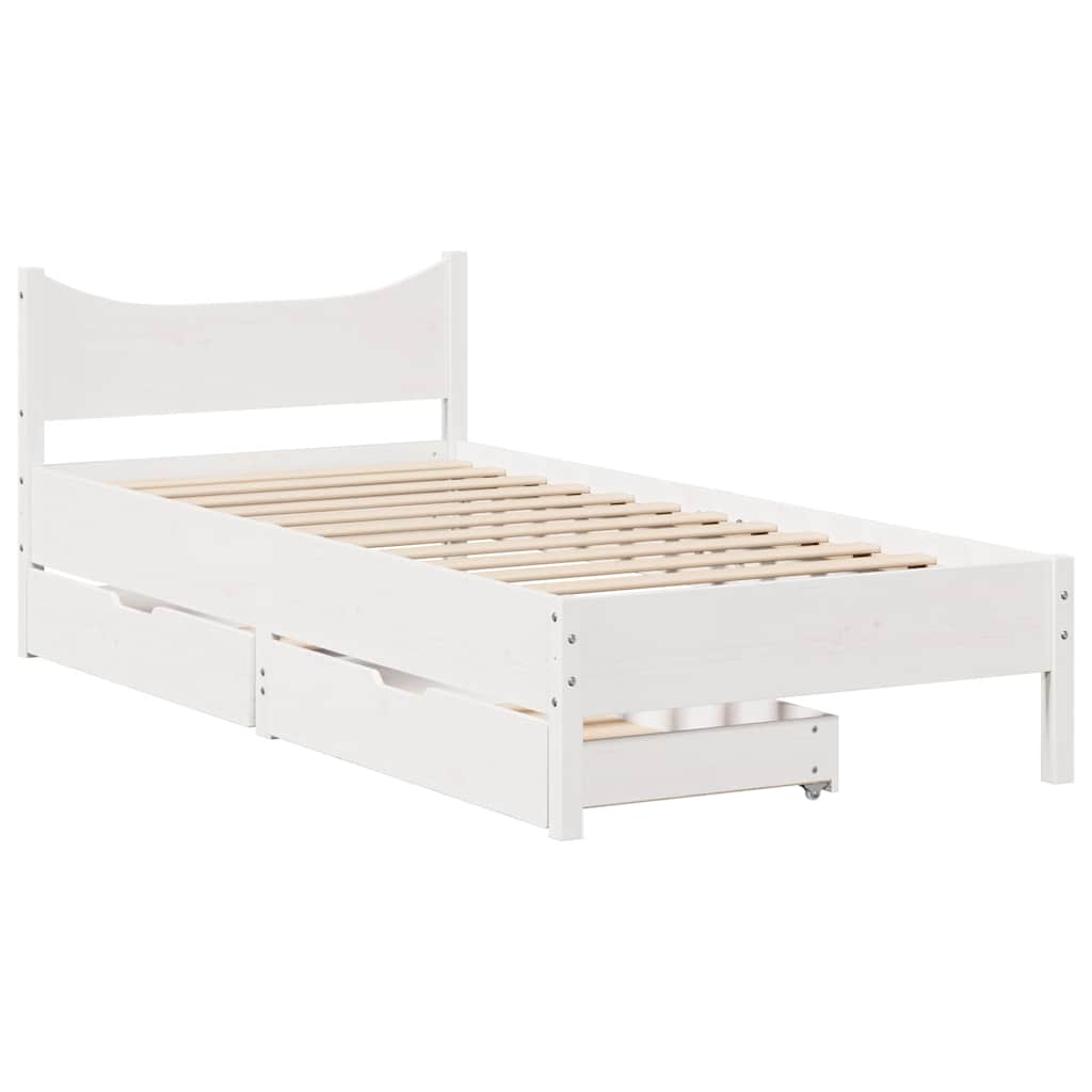 Sängynrunko laatikoilla valkoinen 75×190 cm täysi mänty