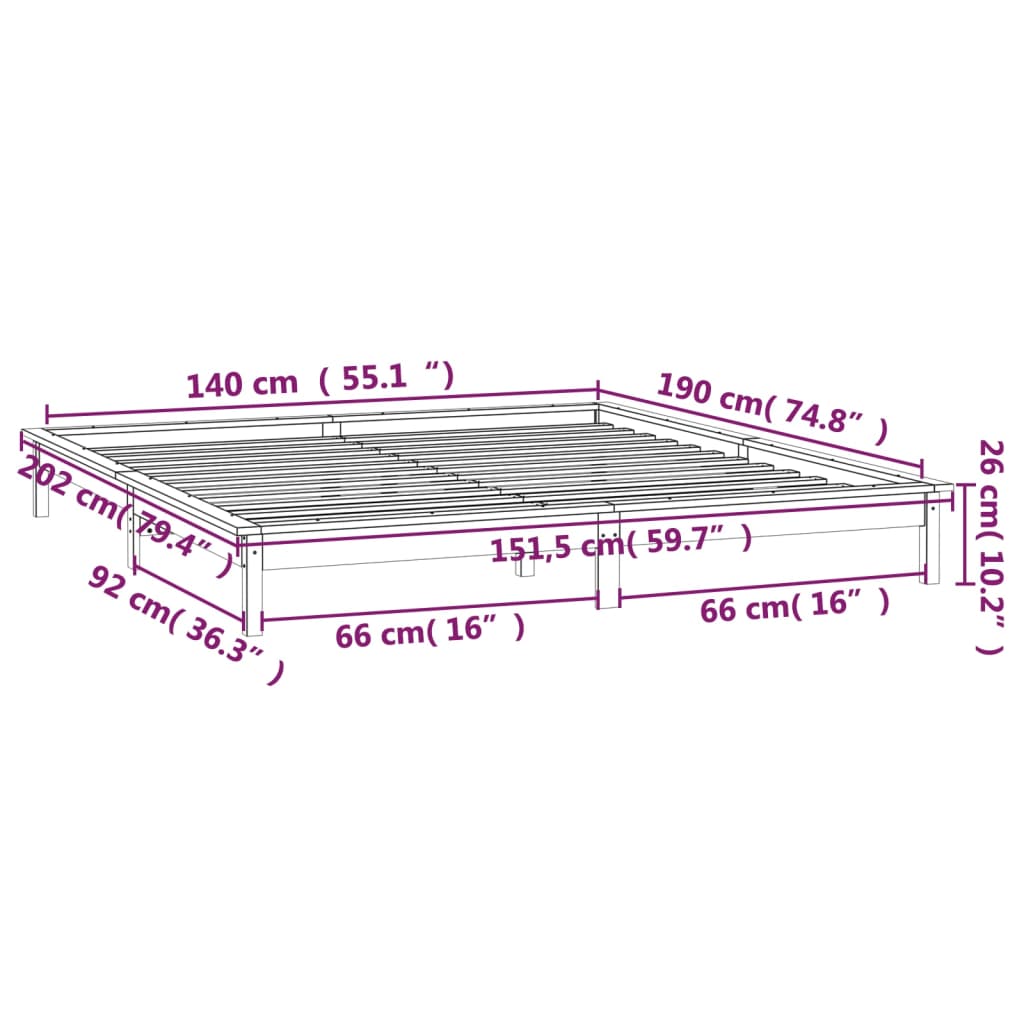 • Tämä sängynrunko sopii patjalle, jonka mitat ovat 140 x 190 cm.