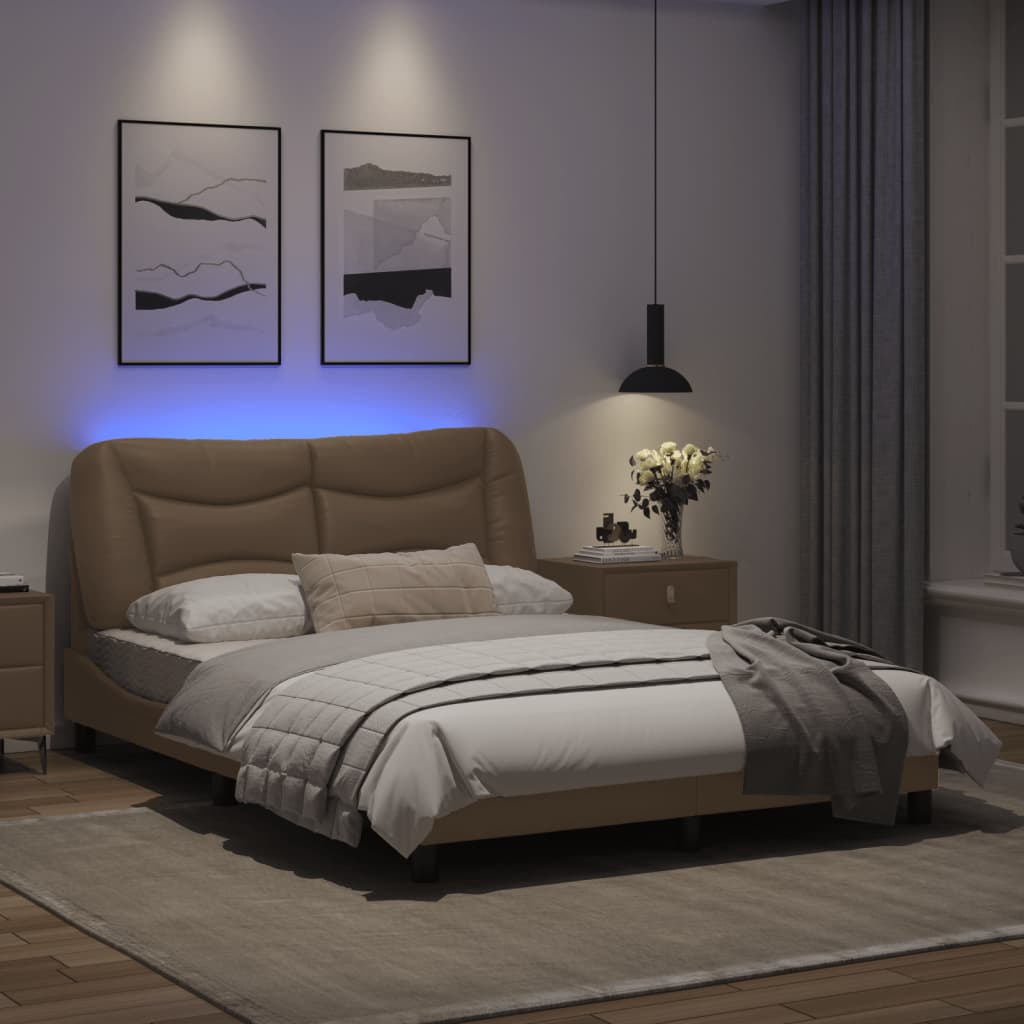 Sängynrunko LED-valoilla cappuccino 140×200 cm keinonahka