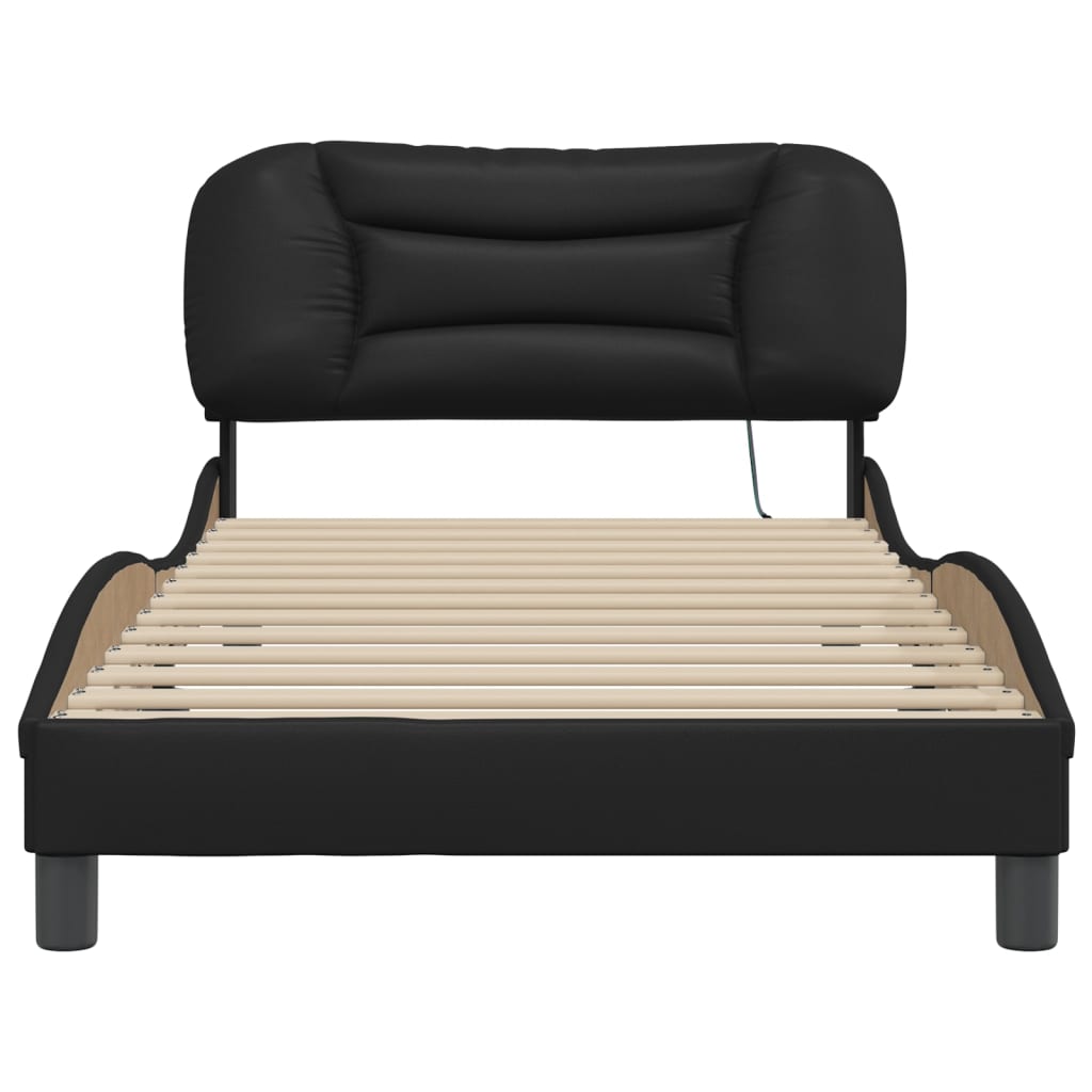 Sängynrunko LED-valoilla musta 100×200 cm keinonahka
