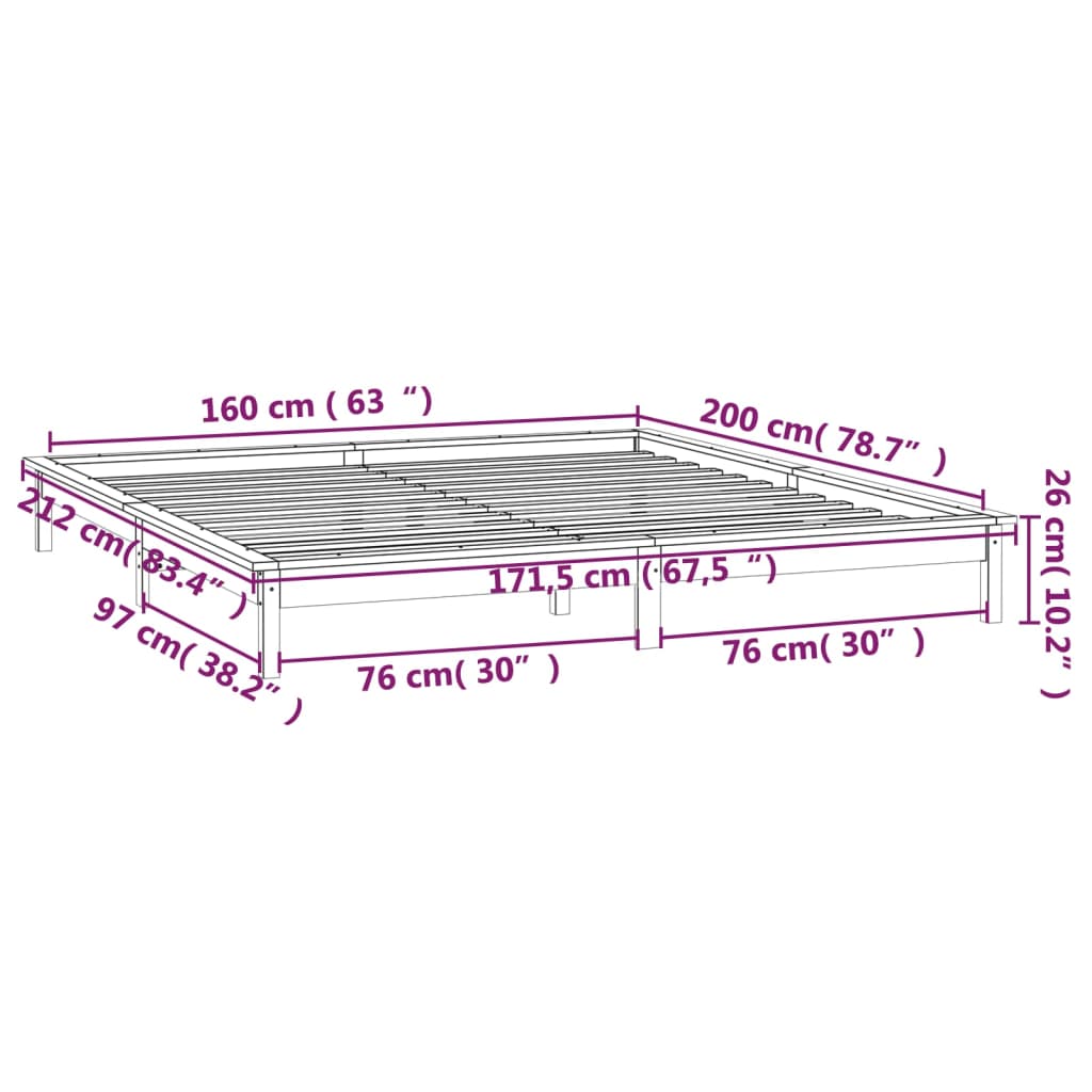 Sängynrunko LED-valoilla valkoinen 160×200 cm täysi puu
