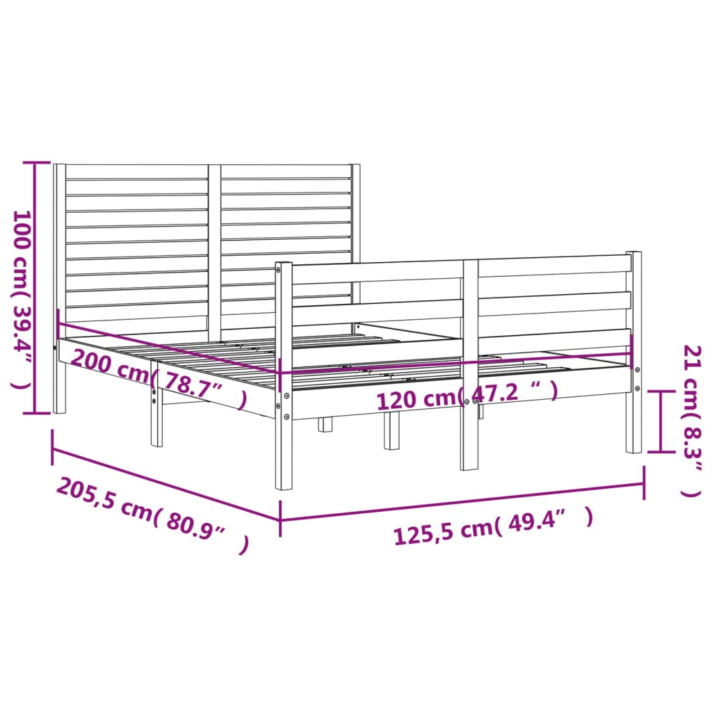 Sängynrunko päädyillä 120×200 cm täysi puu