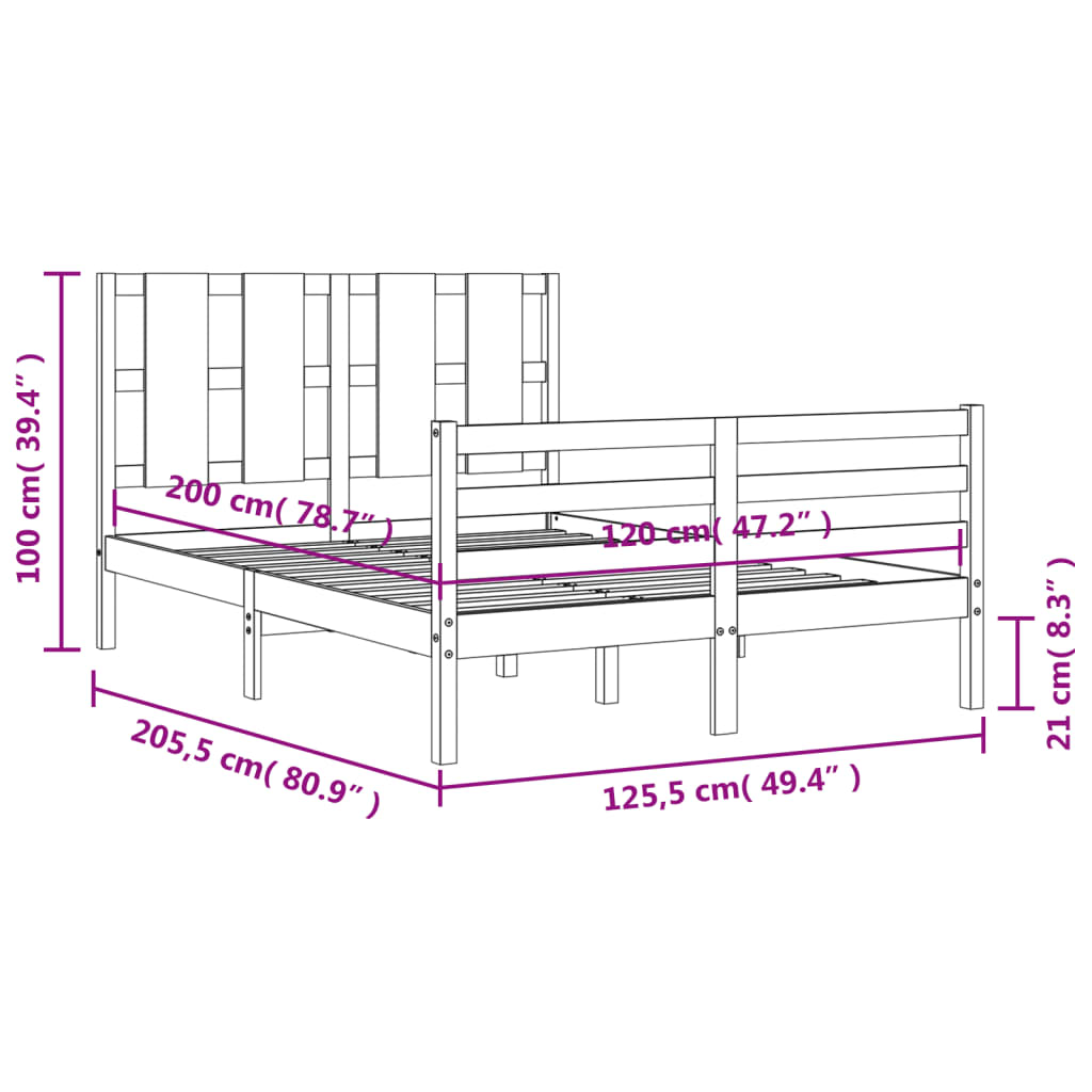 Sängynrunko päädyllä 120×200 cm täysi puu