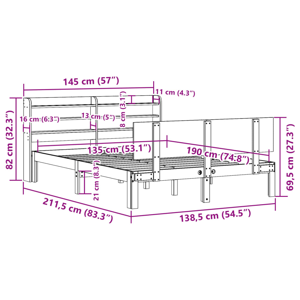 Sängynrunko päädyllä 135×190 cm täysi mänty