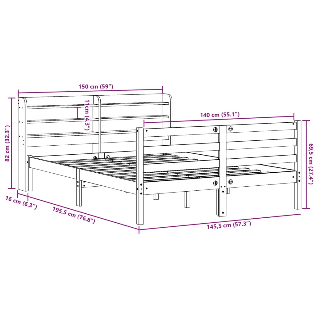 Sängynrunko päädyllä 140×190 cm täysi mänty