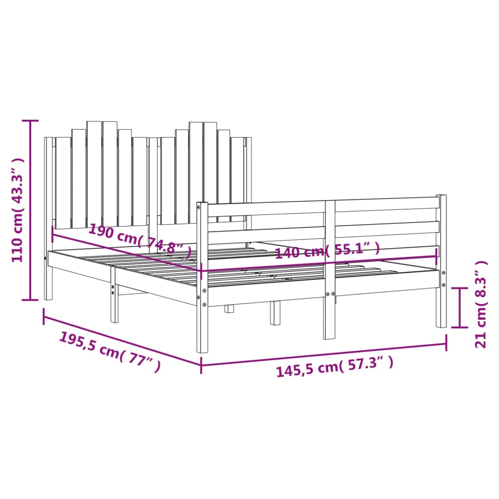 Sängynrunko päädyllä 140×190 cm täysi puu