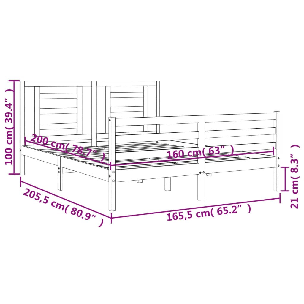 Sängynrunko päädyllä 160×200 cm täysi mänty