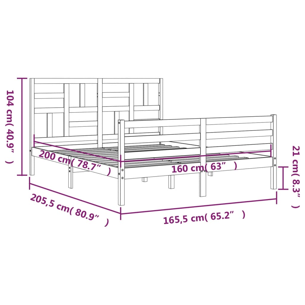 Sängynrunko päädyllä 160×200 cm täysi mänty