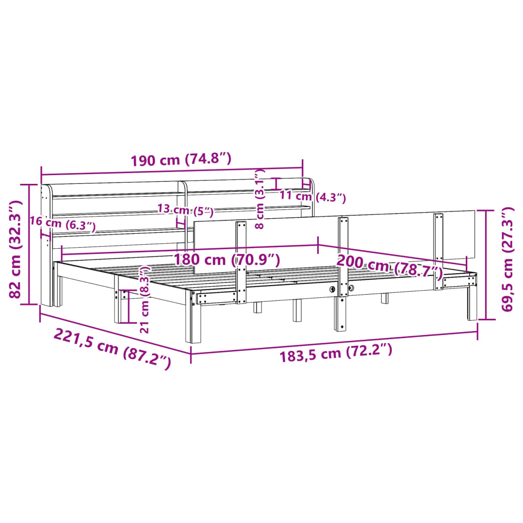 Sängynrunko päädyllä 180×200 cm täysi mänty