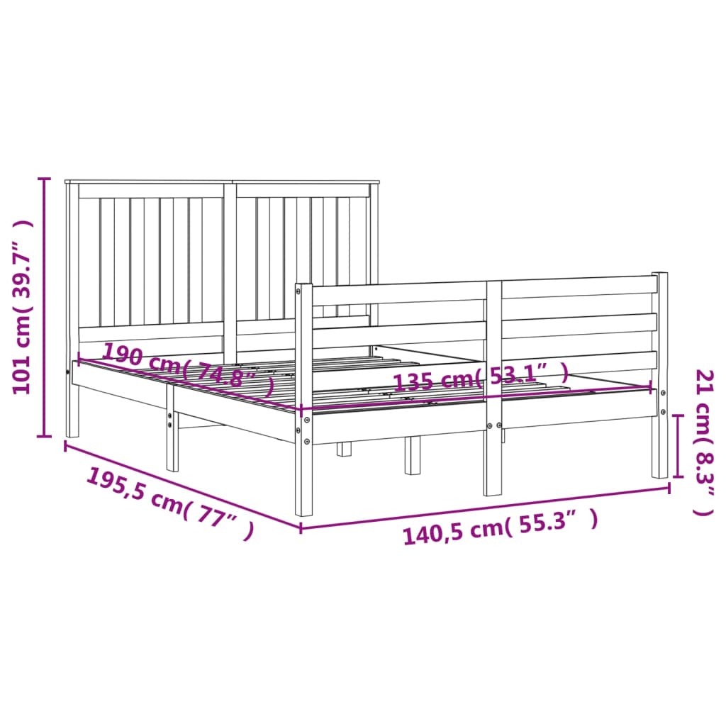 • Sängyn kokonaismitat: 195,5 x 140,5 x 101 cm (P x L x K)