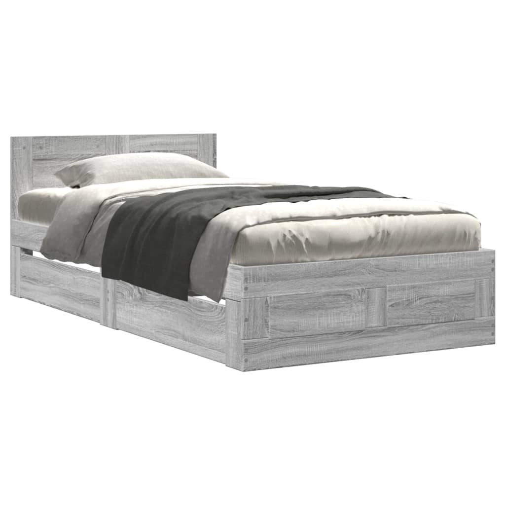 Sängynrunko päädyllä harmaa Sonoma 90×190 cm tekninen puu