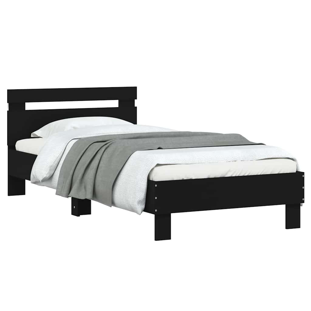 Sängynrunko päädyllä ja LED-valoilla musta 75×190 cm