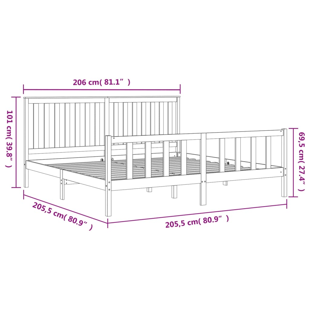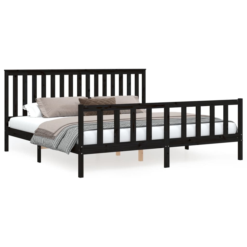 Sängynrunko päädyllä musta 200×200 cm täysi mänty
