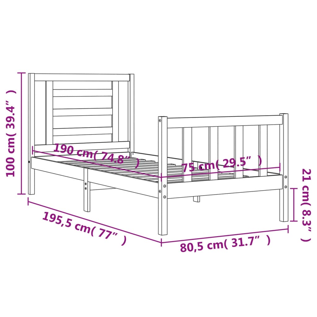 • Sopivan patjan koko (patja ei sisälly toimitukseen): 75 x 190 cm (L x P) (2FT6 Small Single)