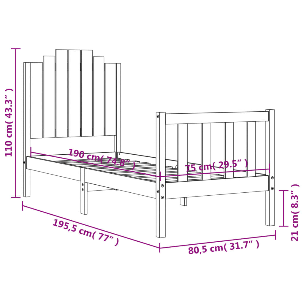 • Sängyn kokonaismitat: 195,5 x 80,5 x 110 cm (P x L x K)