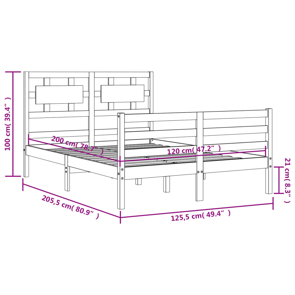 Sängynrunko päädyllä valkoinen 120×200 cm täysi puu