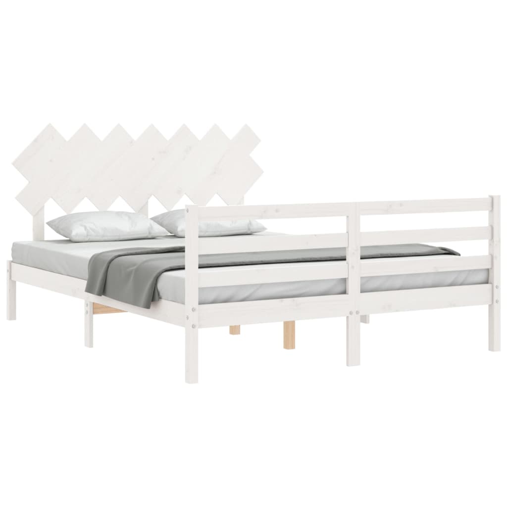 Sängynrunko päädyllä valkoinen 140×200 cm täysi puu