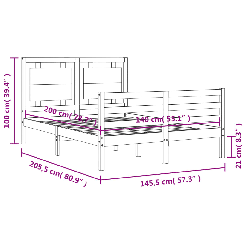 Sängynrunko päädyllä valkoinen 140×200 cm täysi puu