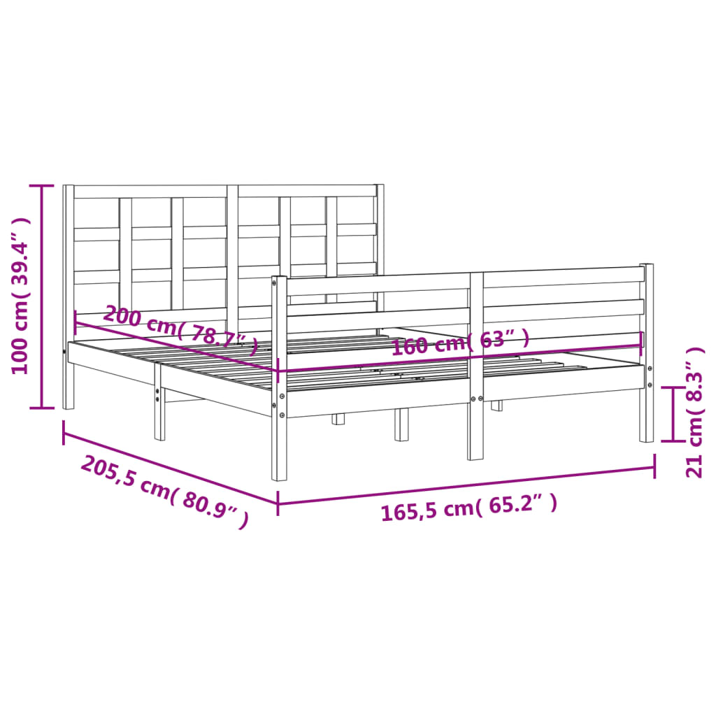 Sängynrunko päädyllä valkoinen 160×200 cm täysi mänty