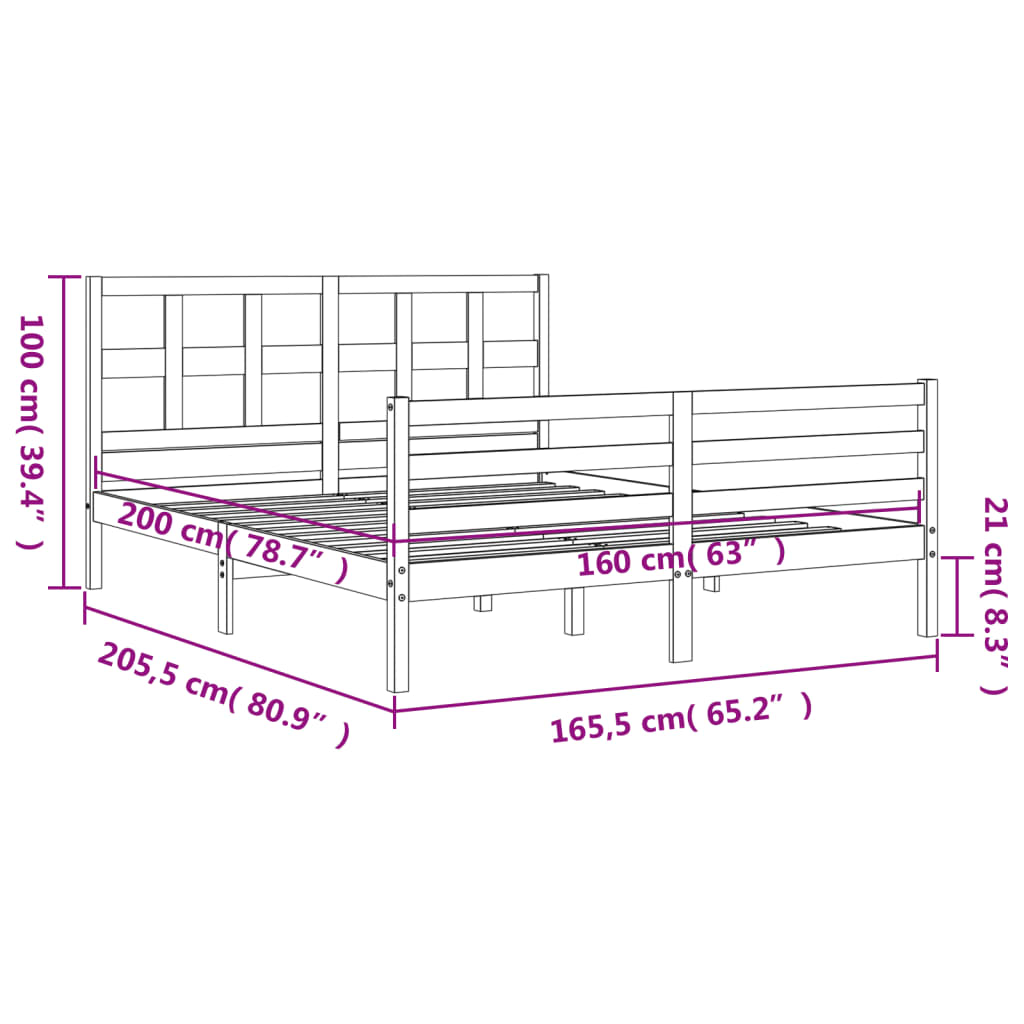 Sängynrunko päädyllä valkoinen 160×200 cm täysi mänty