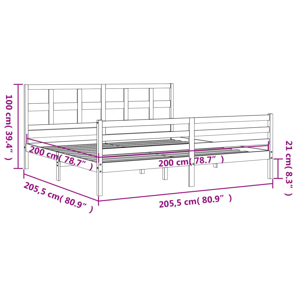 Sängynrunko päädyllä valkoinen 200×200 cm täysi puu