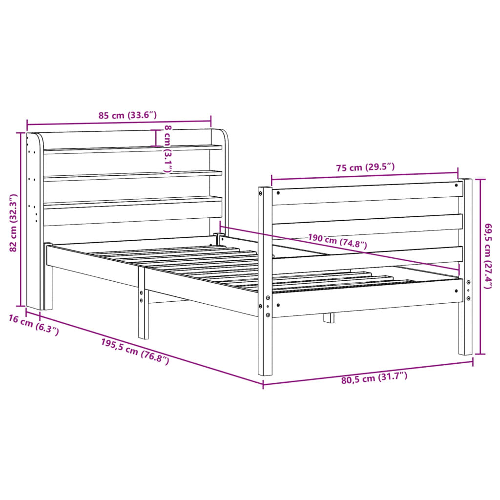 Sängynrunko päädyllä valkoinen 75×190 cm täysi mänty