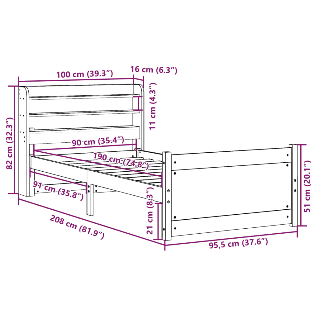 • Sopiva patjan koko: 90 x 190 cm (L x P) (Patja ei sisälly tilaukseen)