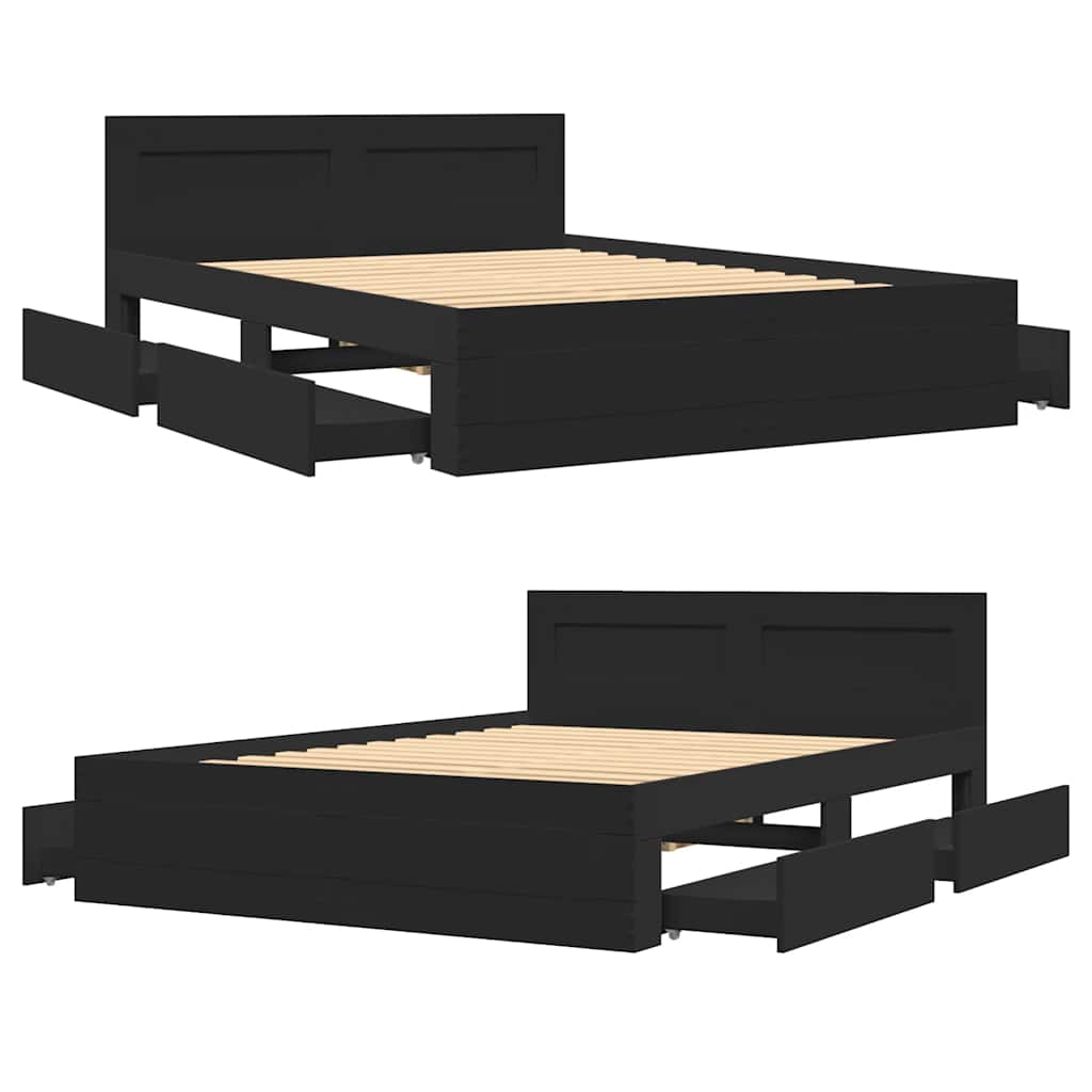 Sängynrunko päätylevyllä musta 140×200 cm tekninen puu