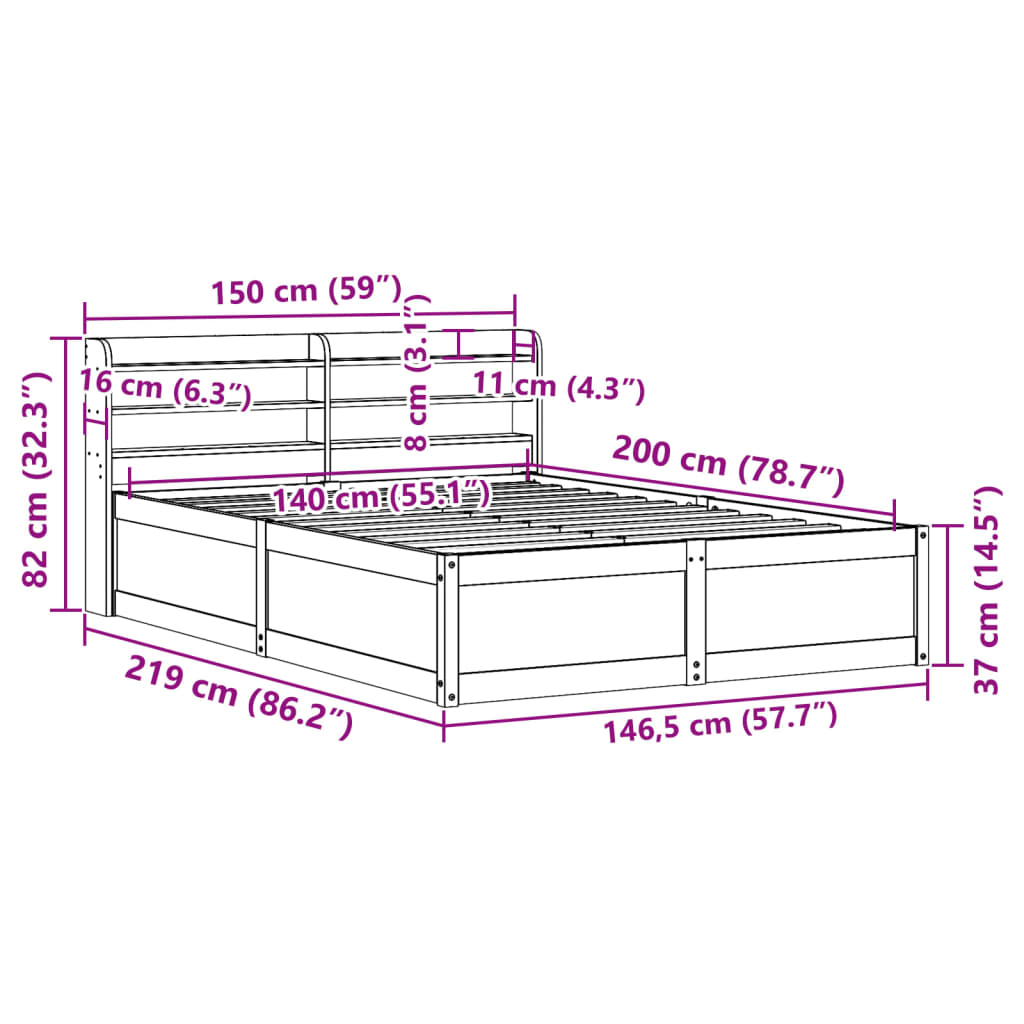 Sängynrunko päätylevyllä vahanruskea 140×200 cm täysi mänty