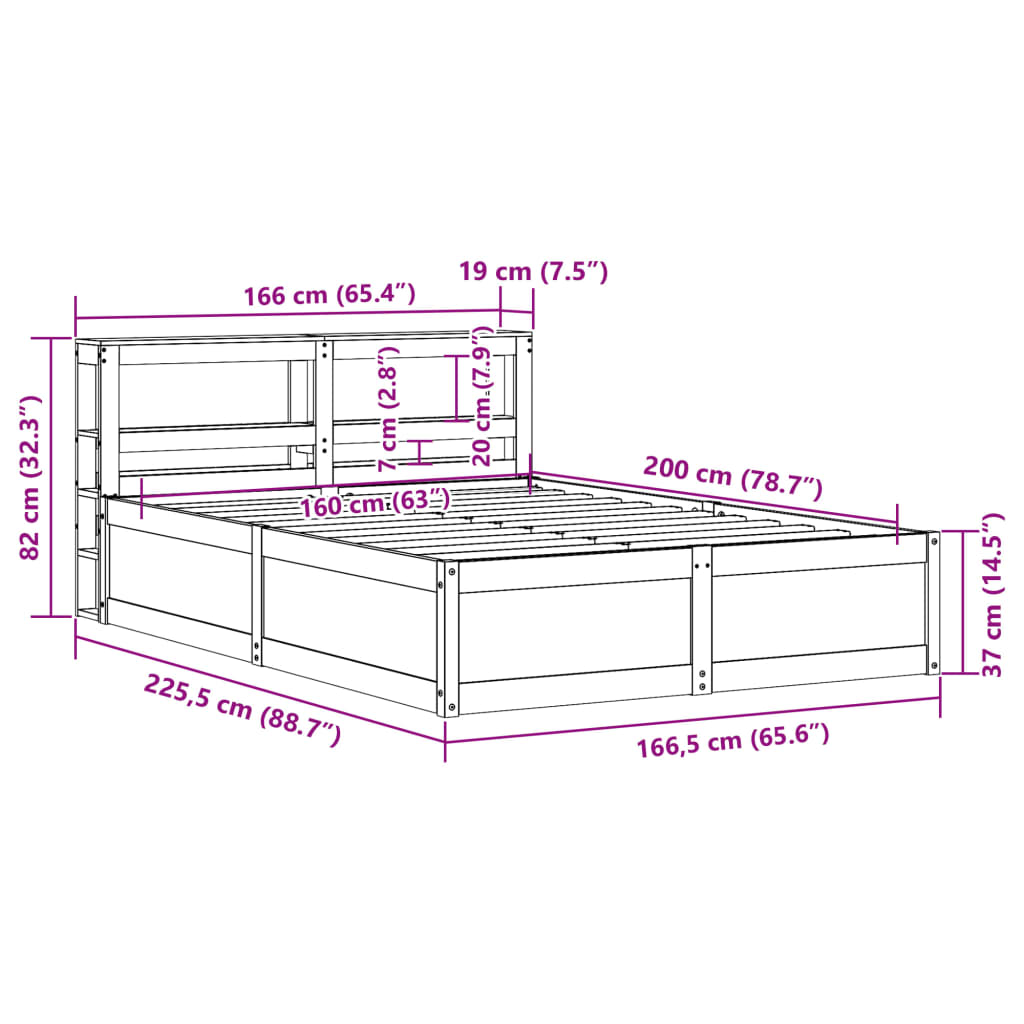Sängynrunko päätylevyllä valkoinen 160×200 cm täysi mänty