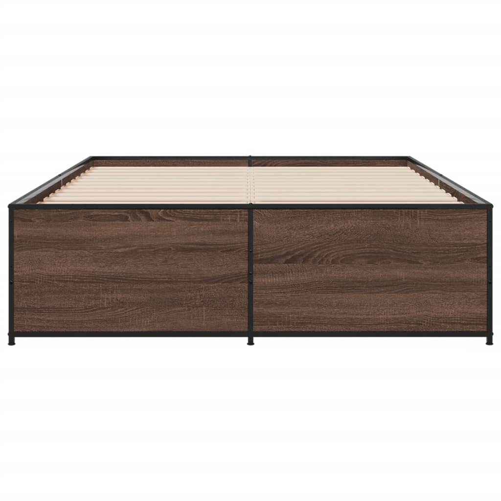 Sängynrunko ruskea tammi 140×190 cm tekninen puu ja metalli