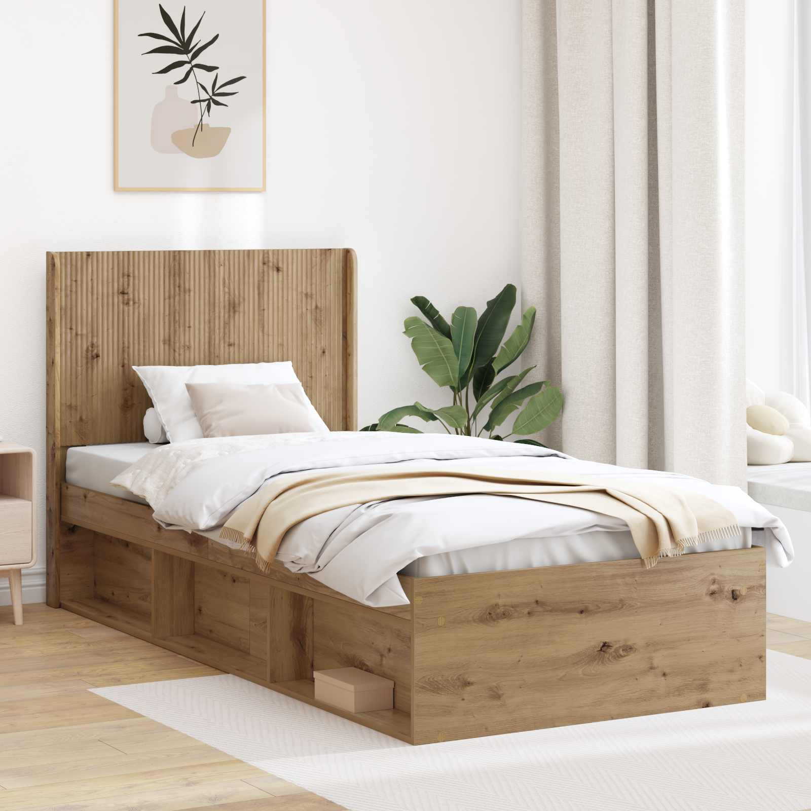 Sängynrunko säilytyksellä ja päänäytöllä Artisaanitammi