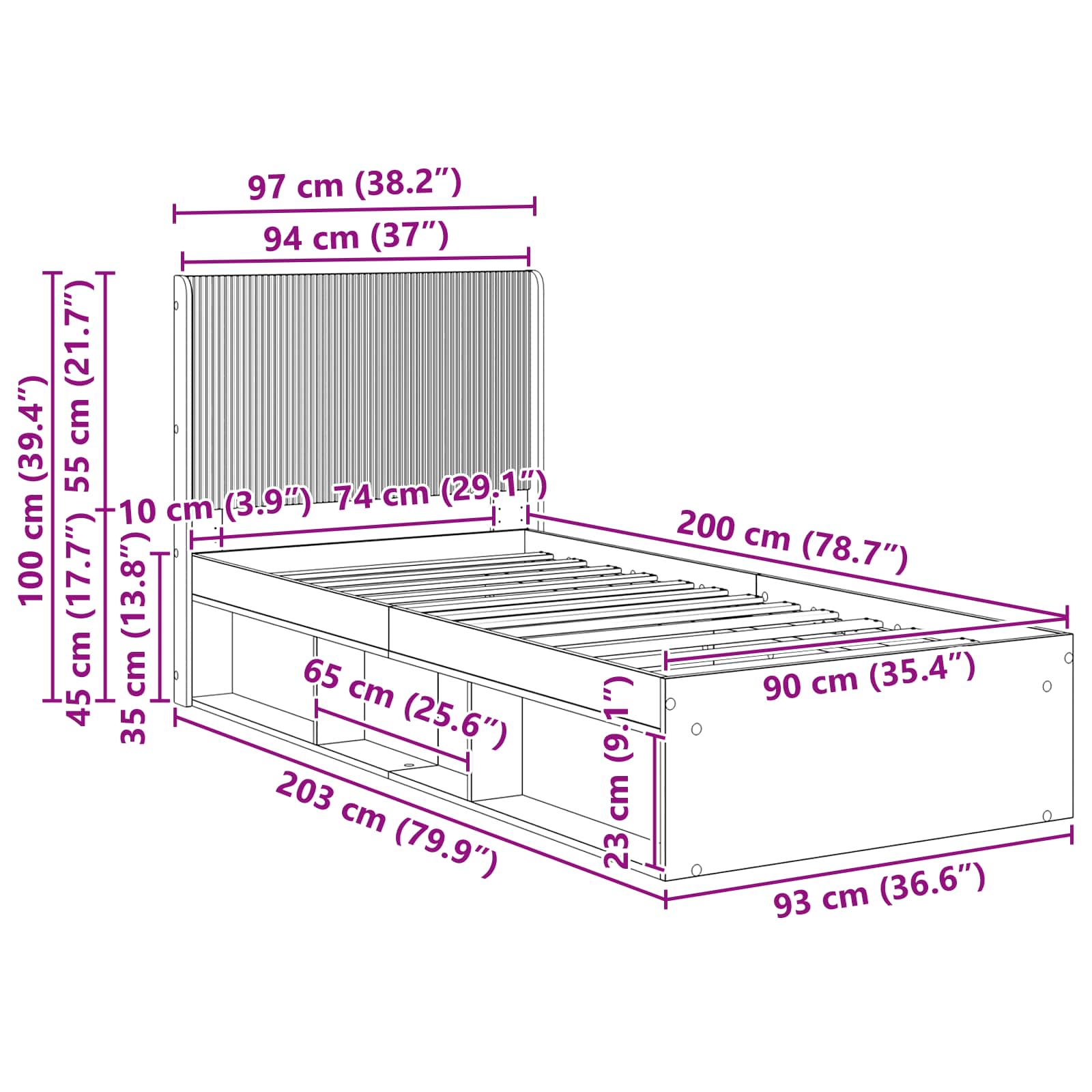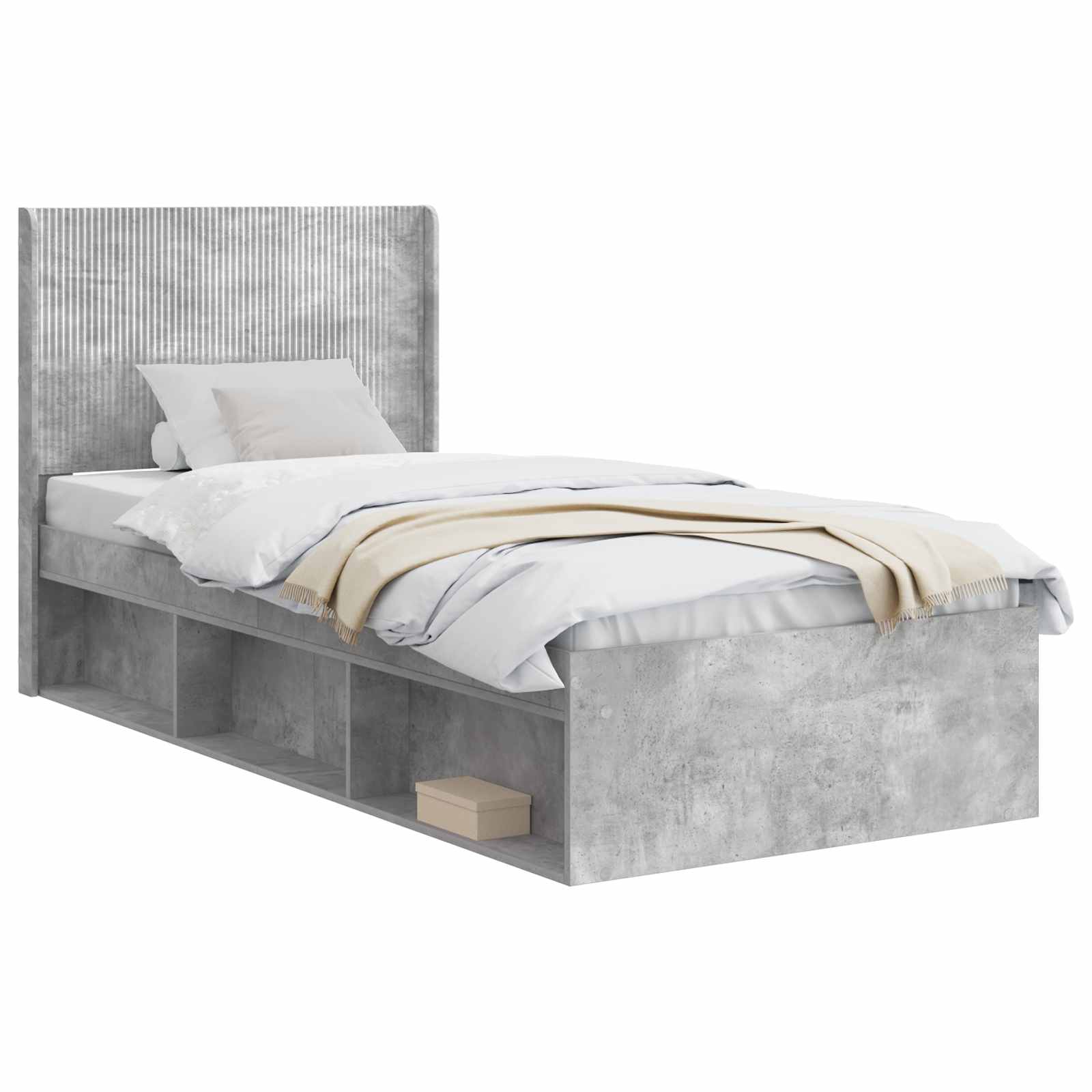Sängynrunko säilytyksellä ja päänäytöllä Betoninharmaa